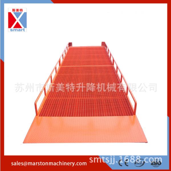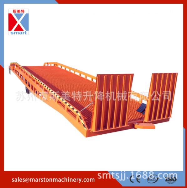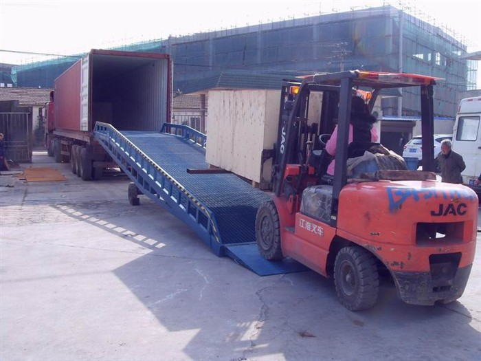 | 移動式登車橋應用于無裝卸站臺或裝卸位置不固定以及裝卸場地狹小等場合,實現(xiàn)了貨物快速裝卸。通過它使叉車等搬運車輛直接進入貨車、集裝箱、列車車廂裝卸貨物,大大的提高了工效。登車橋采用手動液壓操縱,無需其它動力,能適用于各種裝卸場合;登車橋采用支腿支撐和網(wǎng)格狀鋼板結(jié)構(gòu),有更可靠的安全性能。登車橋有整體式,分體式,左右翻板可供選擇。 |