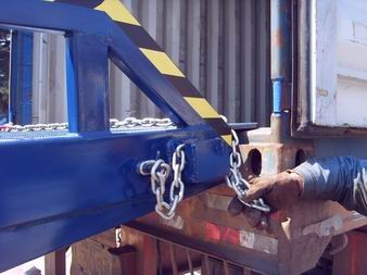 堅固耐用的移動輪 移動輪采用實心輪胎,不用充氣,堅固耐用,配合剎車墊,保證作業(yè)安全。 鉸鏈過渡 可調(diào)節(jié)長度的索鏈用于鉤住車輛,使登車橋與車輛即使發(fā)生移位時,始終緊密貼合。 高強度齒形防滑格刪板 網(wǎng)橋體上面鋪設一層齒形防滑網(wǎng)紋鋼板。網(wǎng)眼是扭曲和鏤空的,不僅提高了工作的可靠性,而且能防止油脂、污垢、雨水和冰雪的堆積。