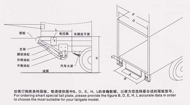 2.尾板動力液壓站、密封件、電氣系統、主要部件為瑞典、意大利原裝進口,可連